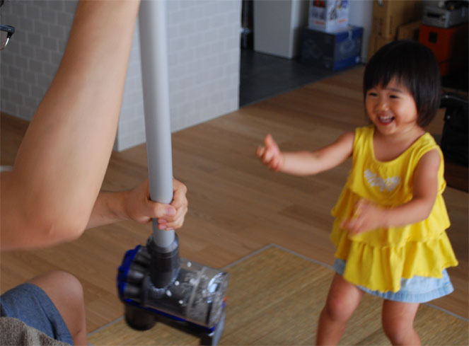 おもちゃがないから、と掃除機で遊ぶ。