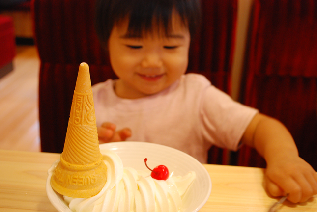 ひーこのすけはソフトクリームを目ざとく見つけて「あちきーむ!」と。