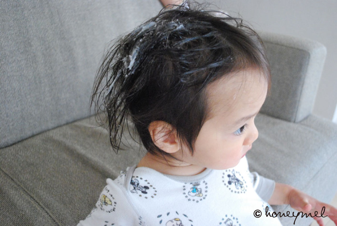 で、次の日も隠しておいたワセリンを見つけてまた頭に塗ってました。