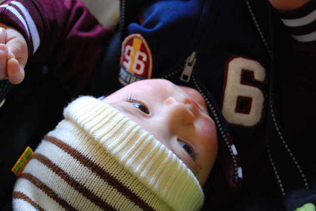 でも寒くてバギーで待機したなー坊&遠くから娘が遊んでる姿を