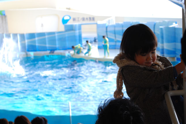 ひーこのすけが喜ぶと思って見に行ったイルカショーも