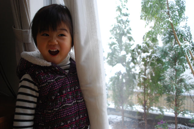 雪を見た2人の反応。