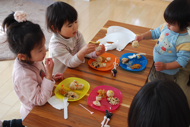自分たちで食べれるようになったとは言え誰かがふざけ始めると