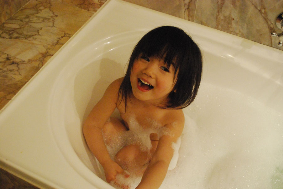 ひーこのすけは念願の泡アワのお風呂に入れて大満足。