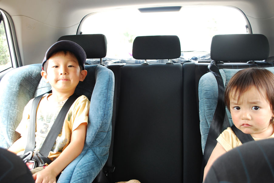 うちの車には男の子チームが乗って出発。