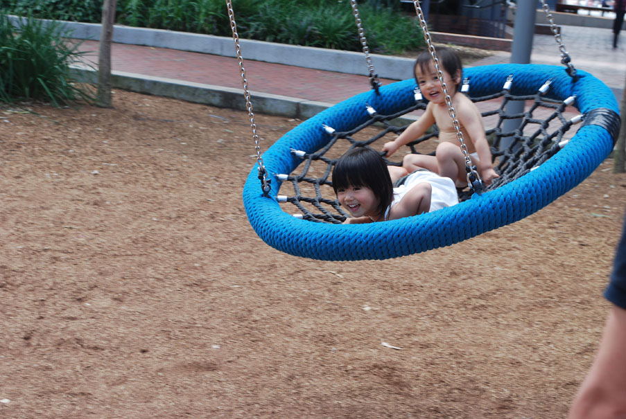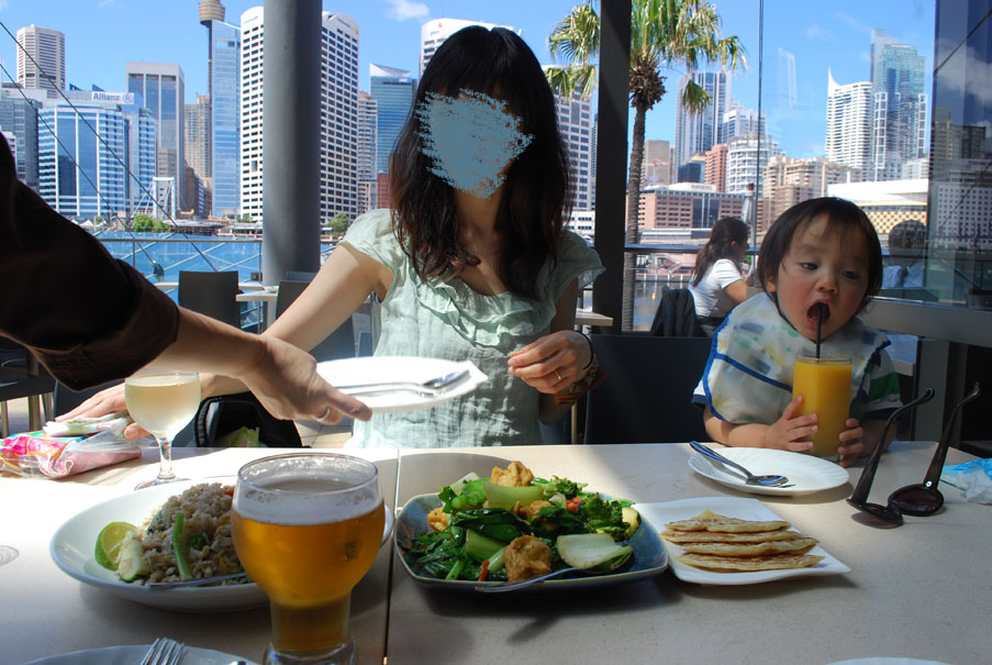 出かける前にお義姉さんが「ダーリングハーバーの近くの公園は要注意!」って言ってたのが分かった。水着持ってくれば良かったな。