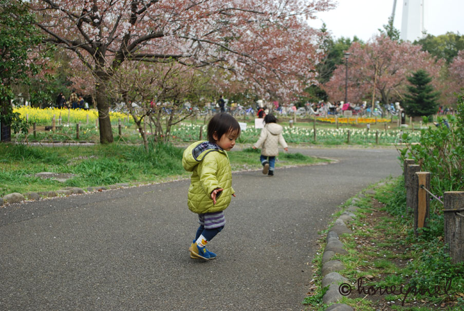 ひーこのすけも「お花キレイね〜」「いいにおいね〜」なんて言うけど公園で遊ぶ事で頭がいっぱい。