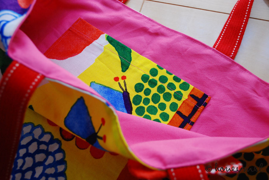 頭の中でリバティ生地を使って乙女な感じにするか好きなmarimekkoの生地を使うか悶々と悩んだ挙げ句、自分の好みでmarimekkoで作る事に。
