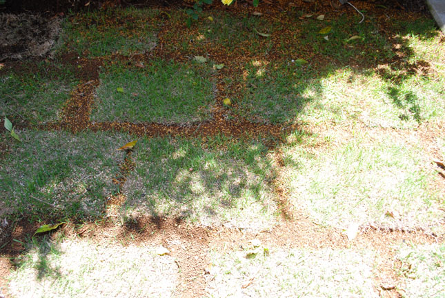 水はけが悪くて半分枯れてしまった芝を張り替えました。