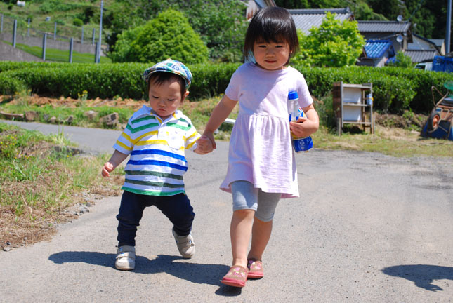ひぃチャン、なぁ坊と手繋いでお姉ちゃんだね~♪