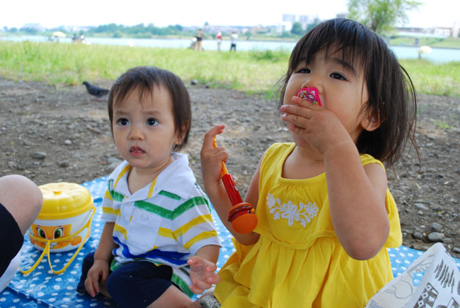 見つけた河原でピクニック。
