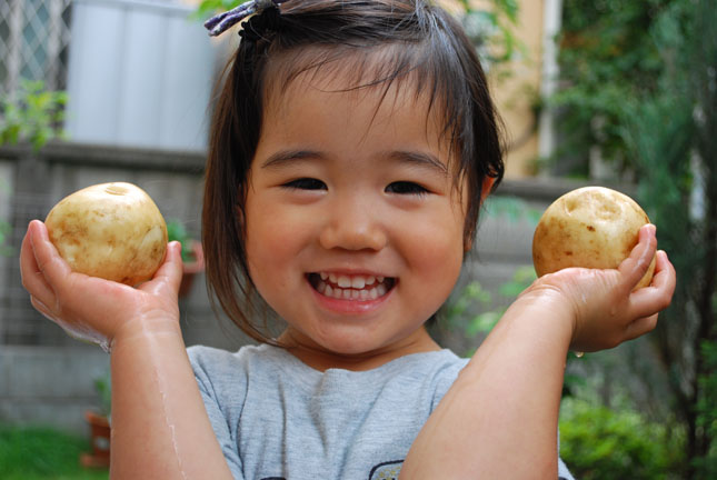 少し掘っただけで立派なジャガイモがゴロゴロ出て来て子供達は