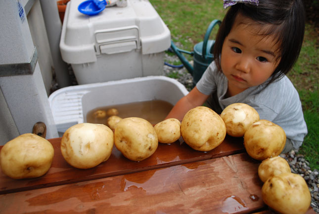 「自分で」掘ったおイモがキレイになっていくのも嬉しいみたい。