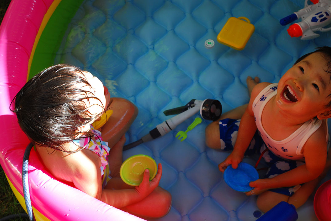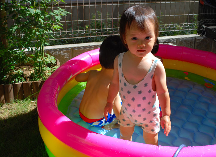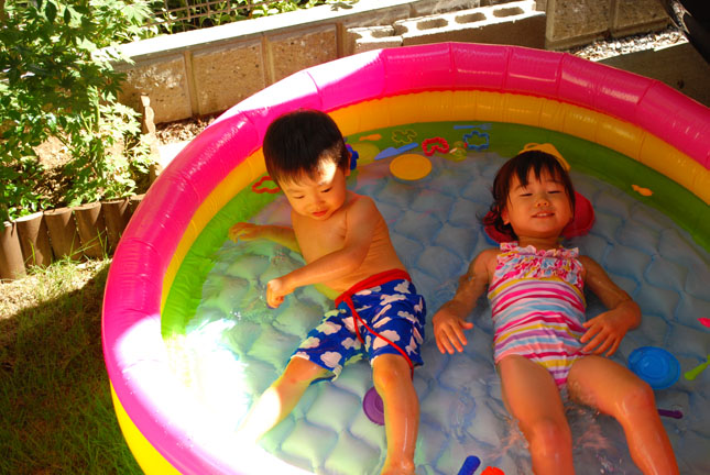 最後は2人ともプールの水でひたすらガラガラペーする遊び。