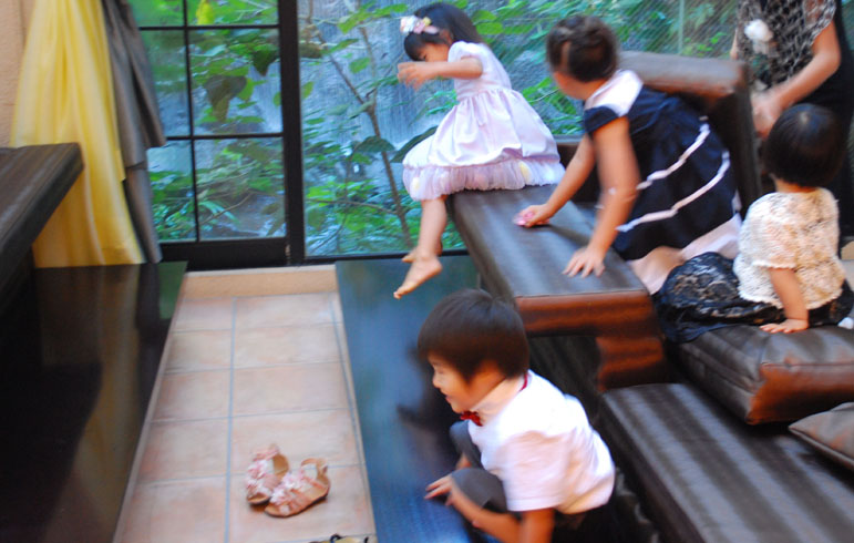 披露宴の間じゅうみんなでワイワイ遊んでた。