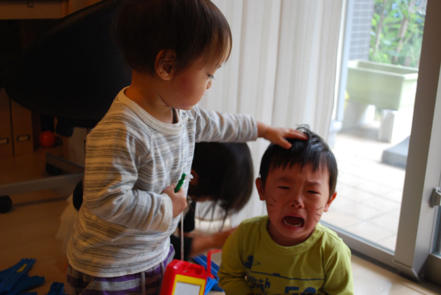 泣いちゃったお友達をナデナデする仕草も様になってる。