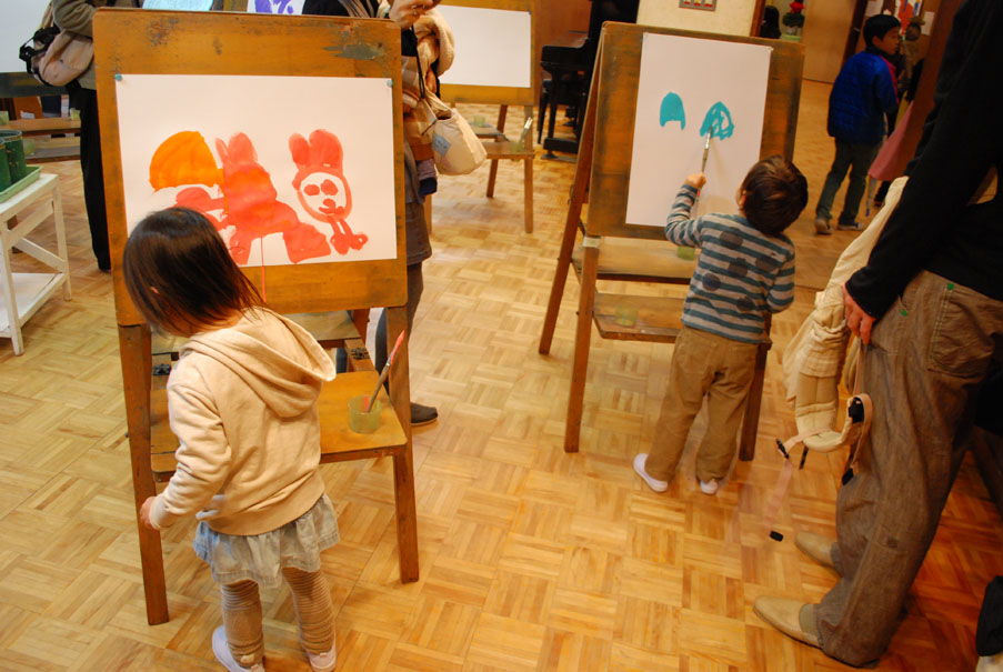 連休初日、お友達が来春から通う幼稚園で展示会があると言うお誘いを