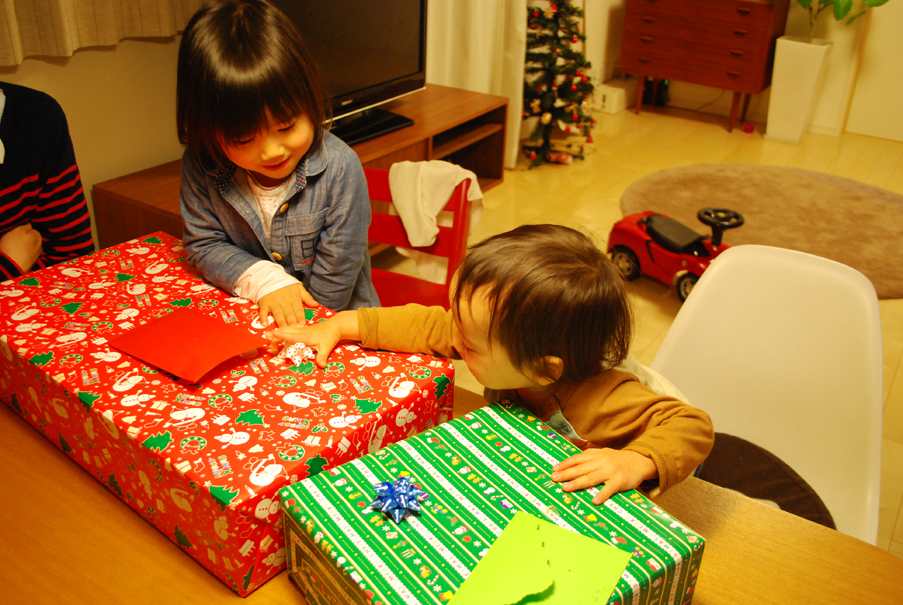 今年はサンタさんがどこか違うところに置いたみたいだから