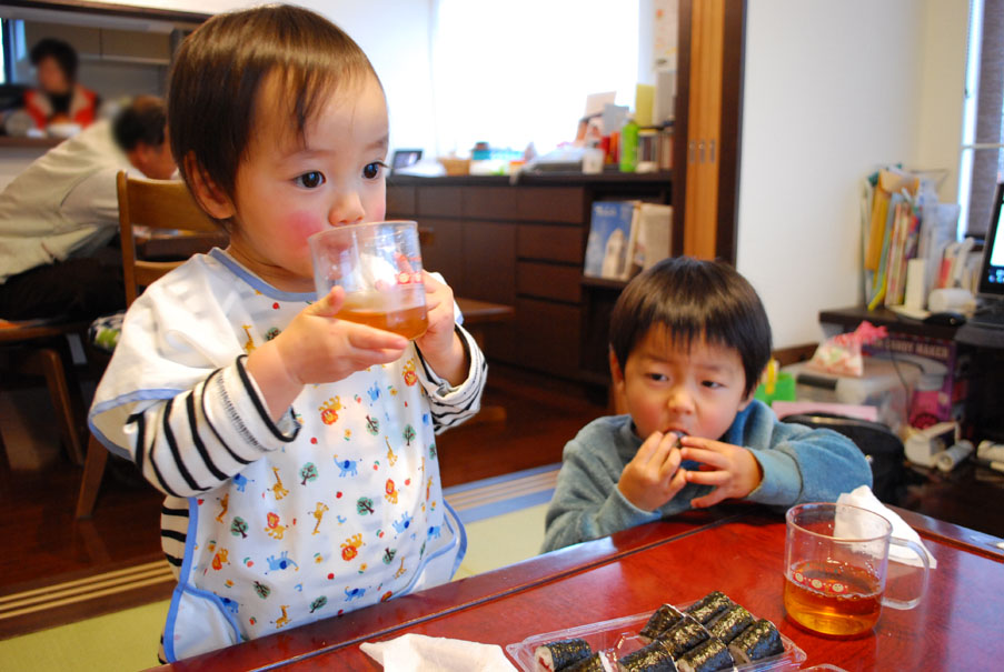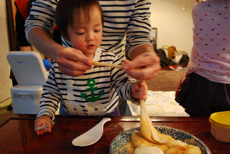 なー坊は初めてのお餅。細かく切ってあげるんだけどどんどん口に入れて行っちゃうからキケンきけん!