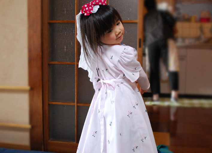 外で遊ぶ意外はずっとこの格好。プリンセス気分だったのかな。