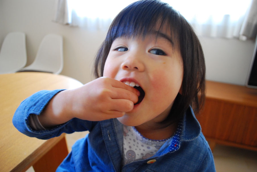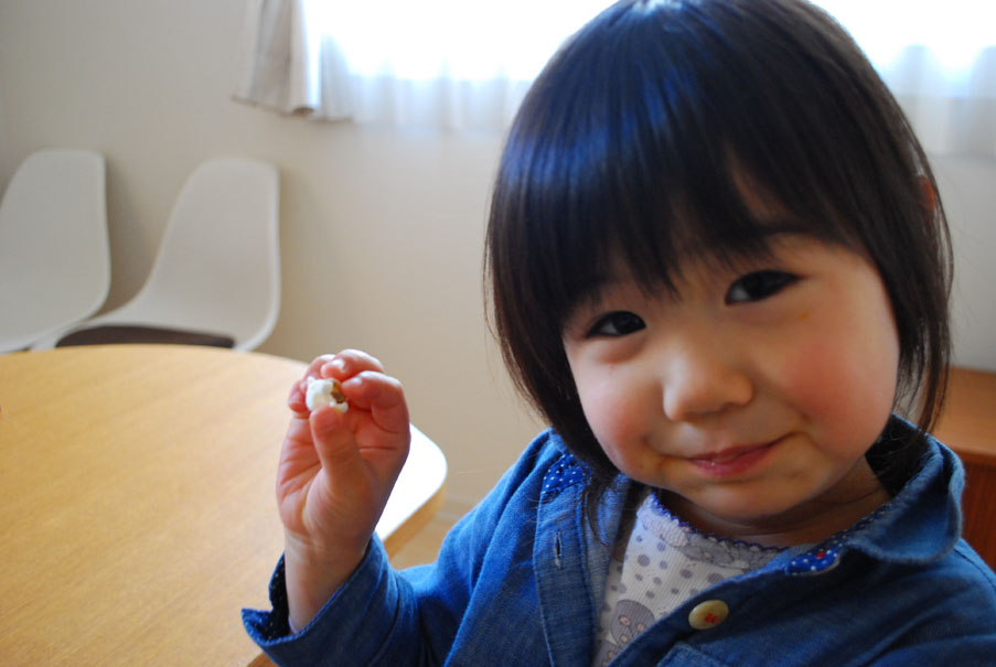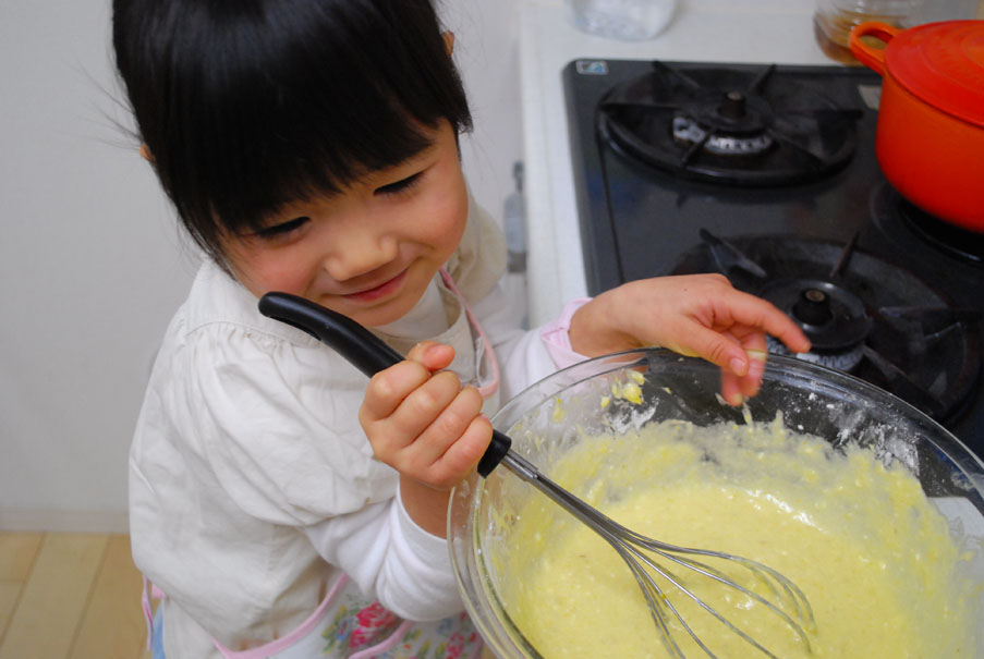 材料を入れて混ぜるだけの時はお手伝いしてもらってる。