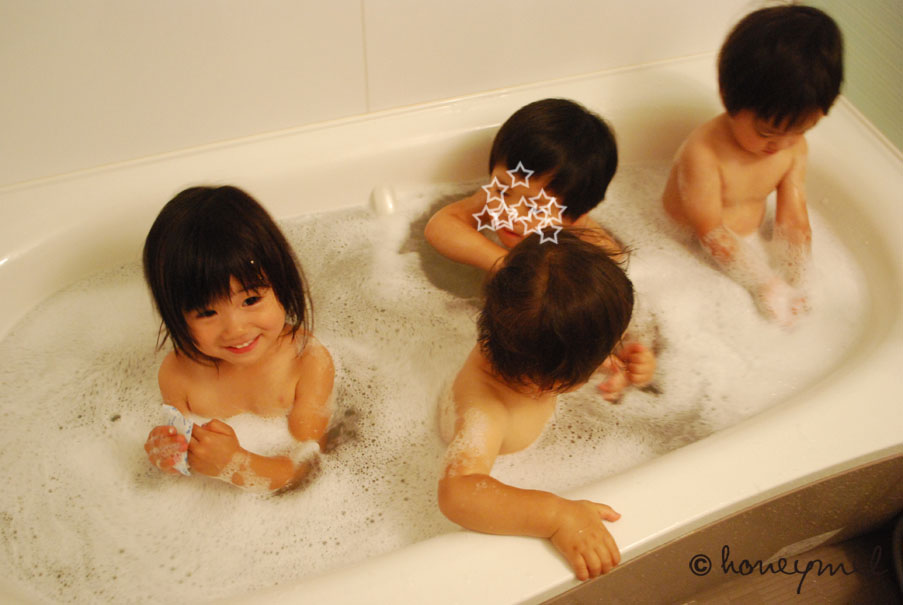 いつもはやらない泡のお風呂で更にテンション上がる!