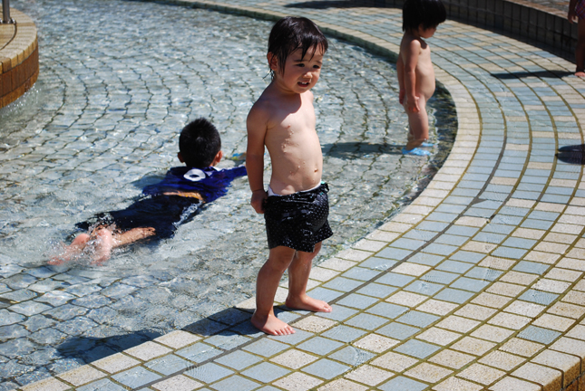 まさか公園の噴水で遊ぶと思わず..。