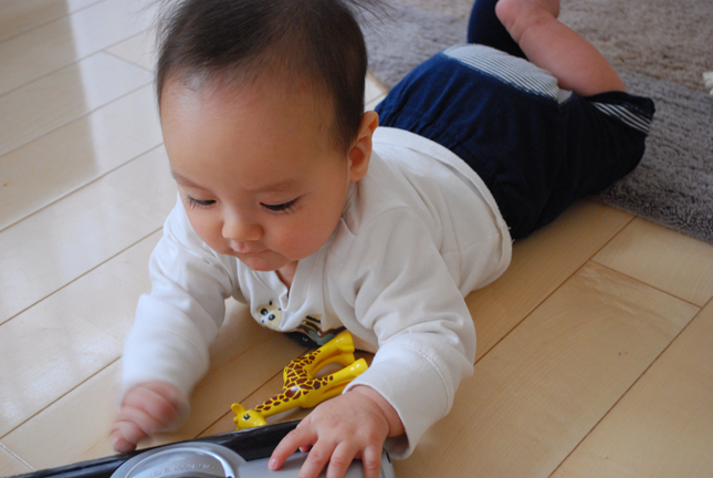 ずり這いも始まってこれから本格的にハイハイが始まるかな。