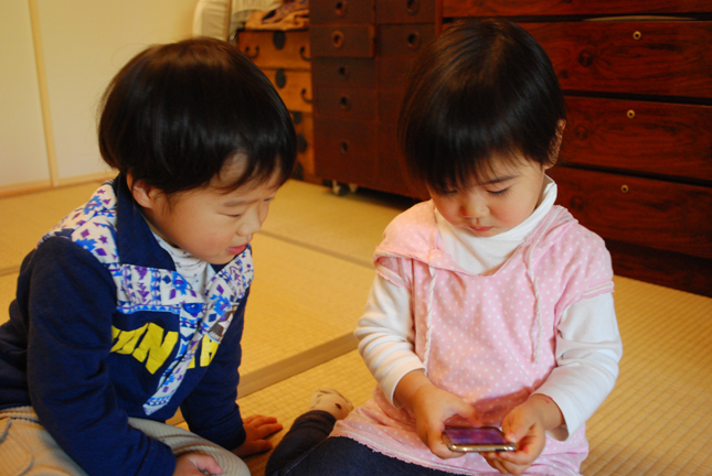2人でじぃじのi-touchで黙々と遊ぶ。