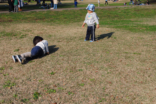 なー坊より芝生だらけになったのはお姉さん。