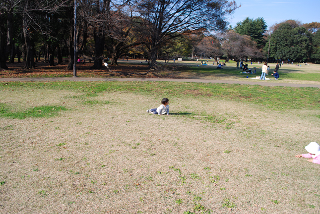 芝生ゴロゴロは伝染しますよね(笑)。わが子も前に公園に行ったとき、お姉ちゃん方がゴロゴロしてるのを見て「あたちも!」って頑張ったんですけど、その時は全くできてませんでした。