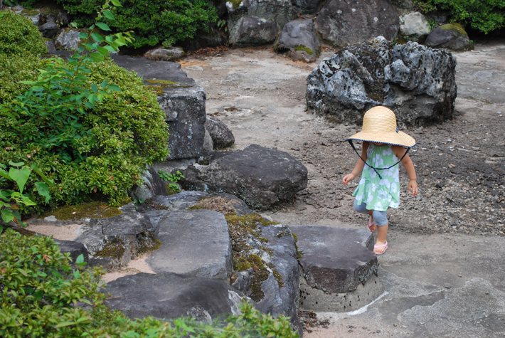 水を張っていない池で遊ぶのだけでもひーこのすけにとっては大冒険。
