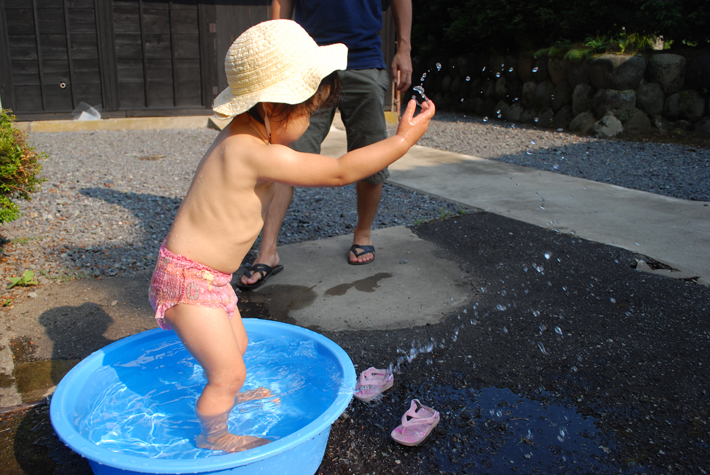 たらいに水を張って水浴びも楽しんでた。
