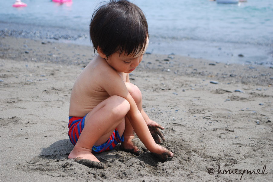 ブルーベリー狩りの後はひーこのすけ待望の海へ。