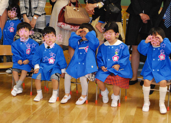 まだ慣れなくて幼稚園では泣いている子もいる中