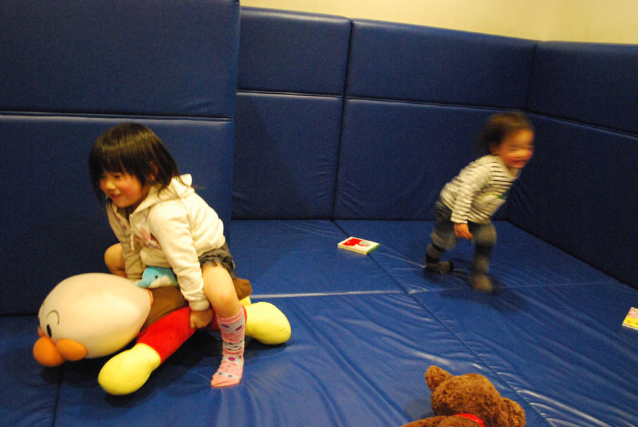 キッズルームでたっぷり遊んでもらってと。(動きが激し過ぎてブレブレ)