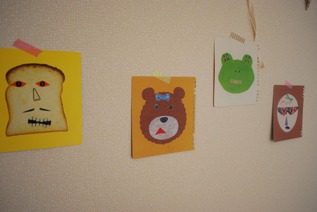 色々な顔にみたてたものの上に付属のシールで目や鼻などをペタペタ