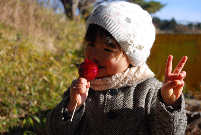 外遊びしてるのに初詣で買ってもらったりんご飴がどうしても食べたくて