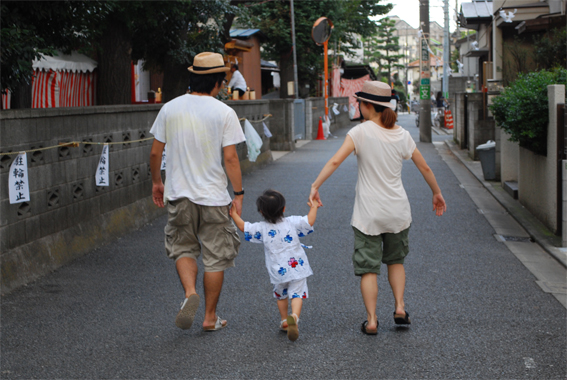 友達夫婦に手をつないでもらってお祭りへ〜。