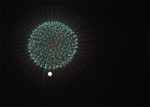 (花火って写真に撮るのが難しい!下の丸いのは満月)