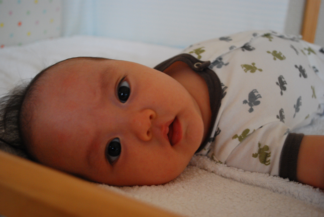 ちょうど満4ヶ月を迎えた次の日、なー坊の寝返りが成功しました!