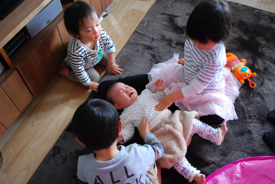 赤ちゃん大泣き!で子供達みんなであやしてみたり。