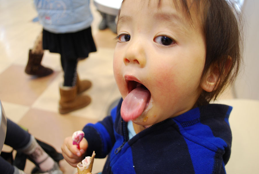 よく堪えたねってパパからご褒美の(?!)アイス。