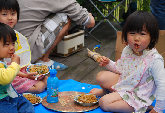 「おそとで食べるとおいしいね〜」ってモリモリ食べてた。