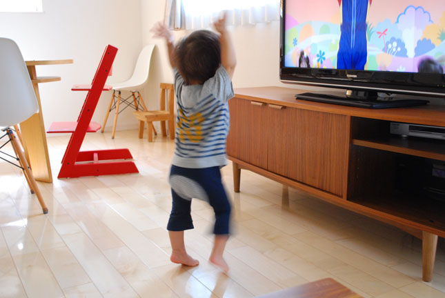 これはおかあさんといっしょの体操を一緒にしてるの図。