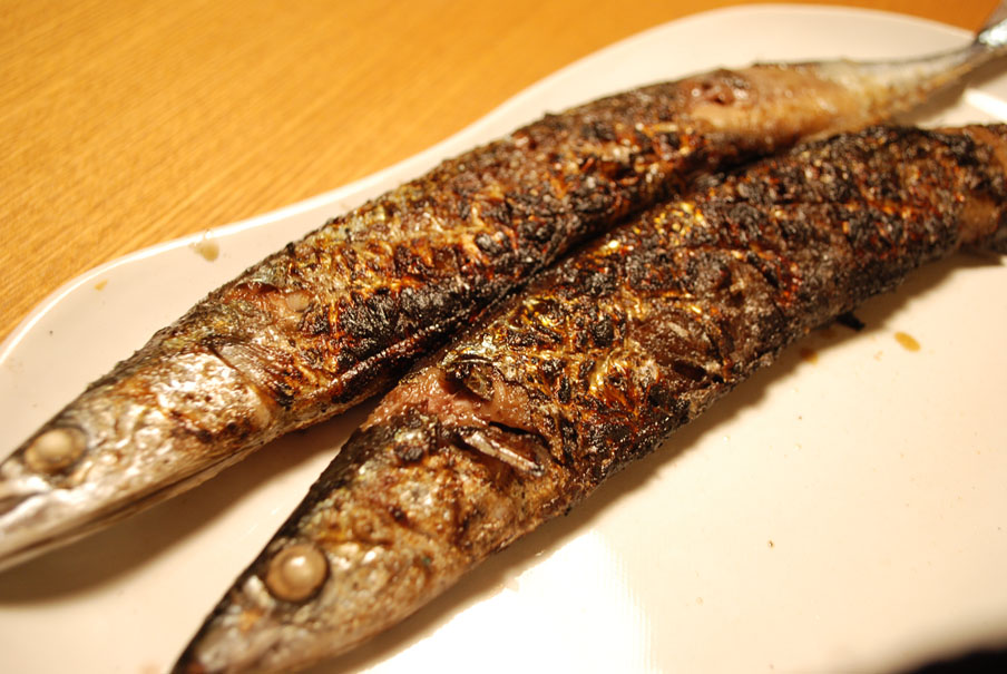 さんまや鶏肉やお野菜を炭火で焼いて。