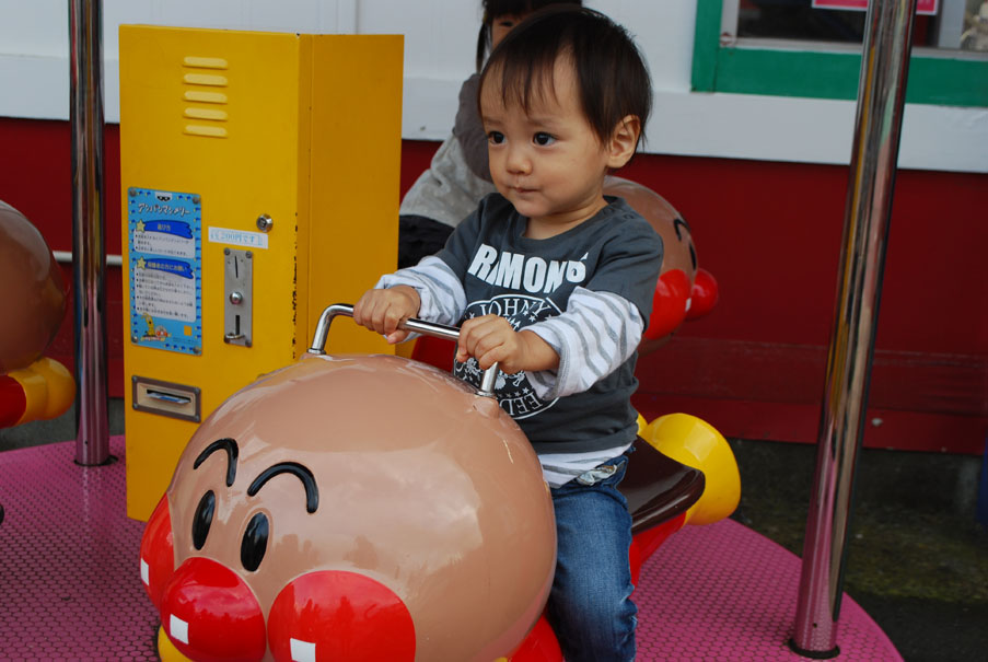200円で動くアンパンマンに乗せたら大喜び。