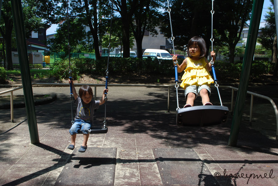 終業式の日はお友達と一緒に水遊び場を新規開拓!