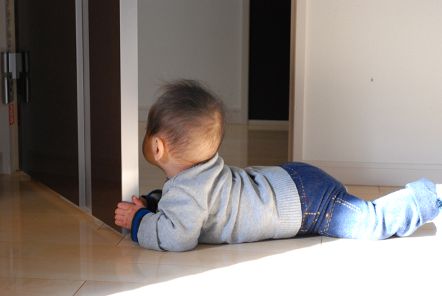 相変わらずまだハイハイまではできず。ズリ這いであちこち移動する。