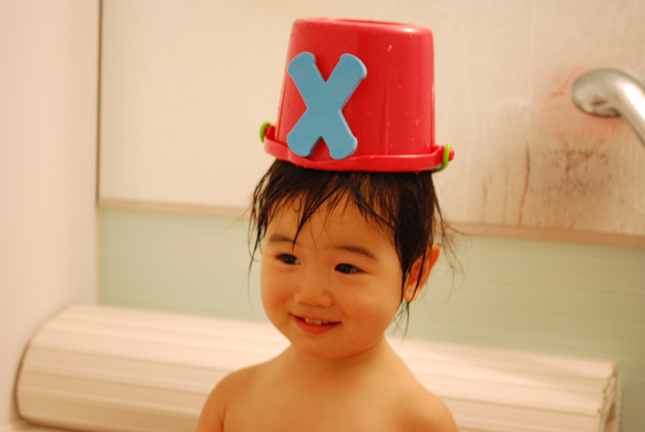 お風呂で使ってるバケツとアルファベットのエックス(×)で